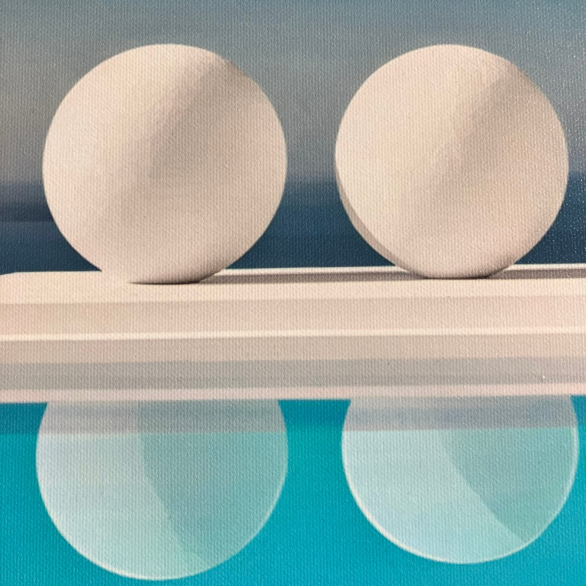 Les dues esferes, formes geomètriques que històricament simbolitzen la perfecció —des de la filosofia clàssica fins a l'Home de Vitruvi— apareixen aquí com a presències silencioses i posthumanes: ja no representen l'individu sinó una consciència expandida que es fusiona amb el paisatge.