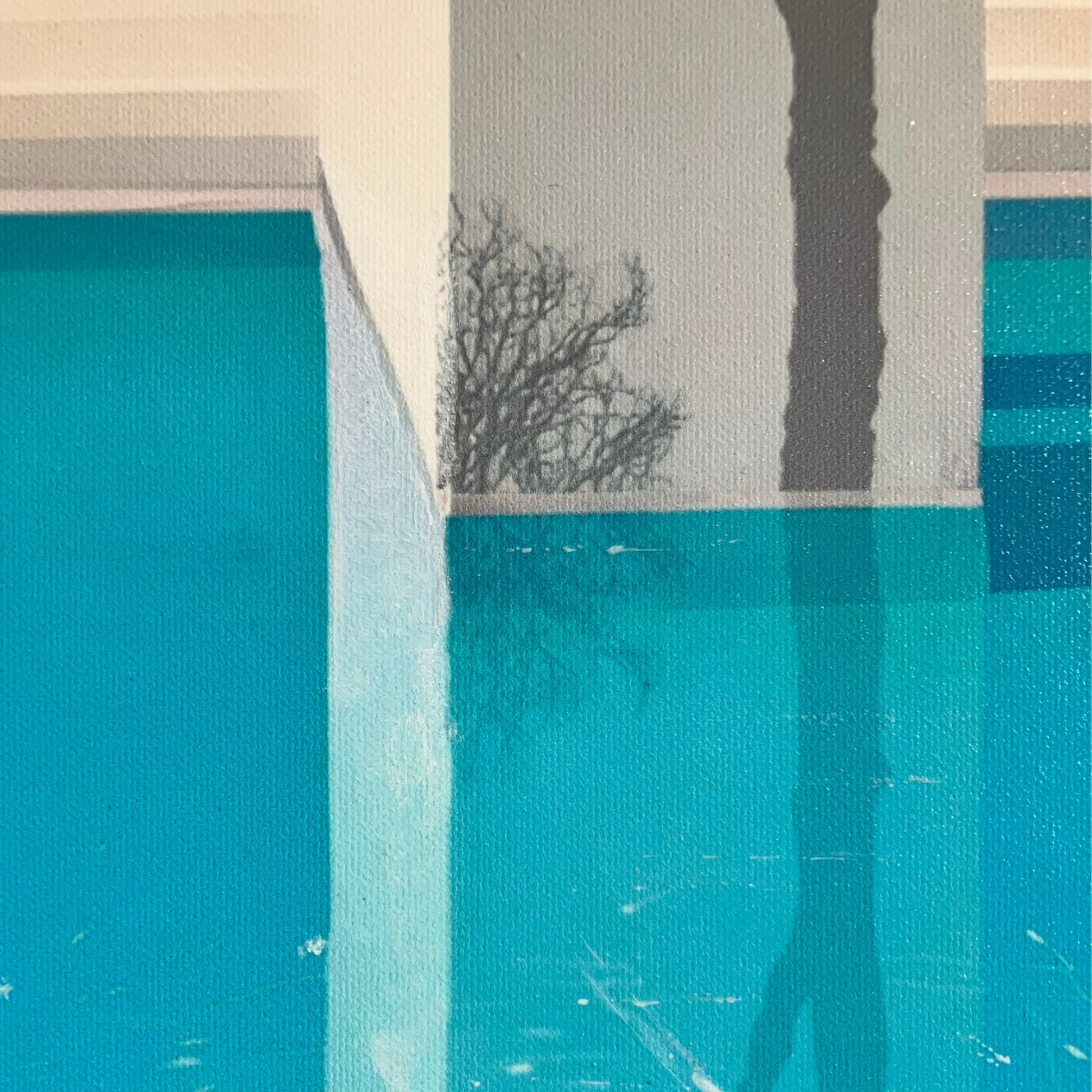 L'ombra de l'arbre projectada sobre l'arquitectura actua com un ressò de la naturalesa que va existir abans de la construcció, tot recordant que la vida orgànica persisteix fins i tot quan la figura humana desapareix.