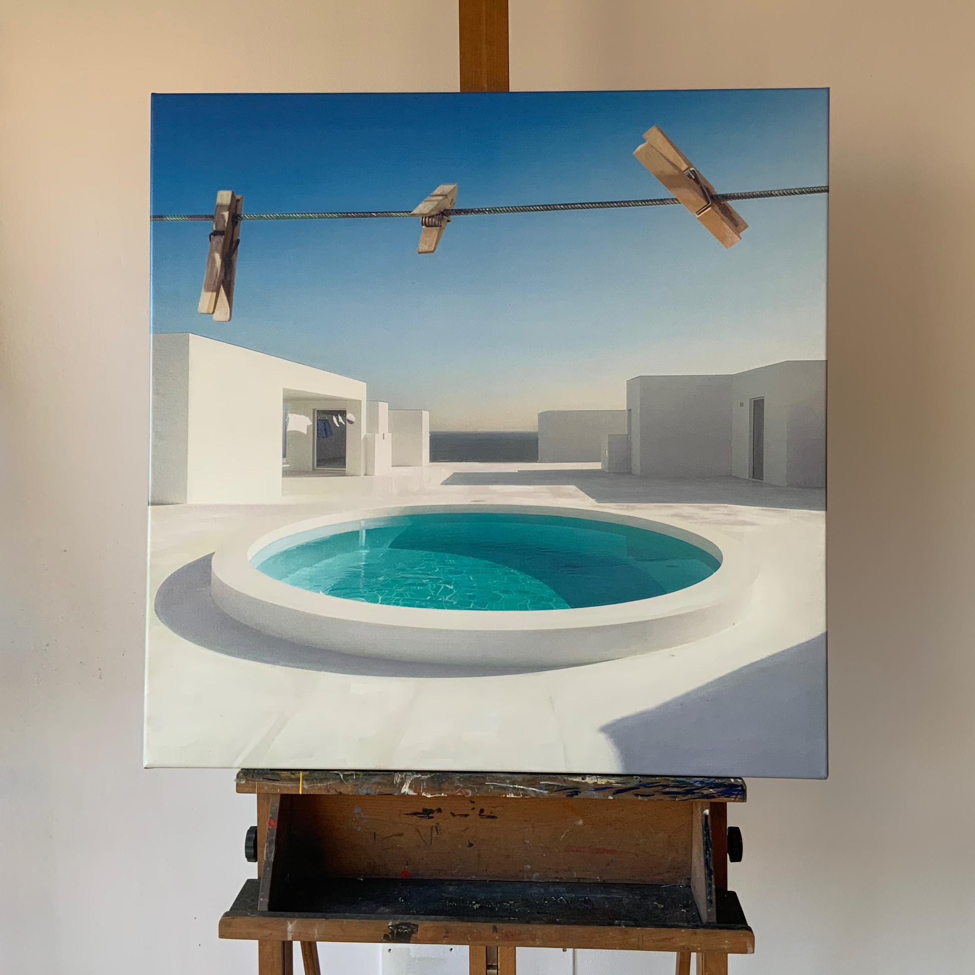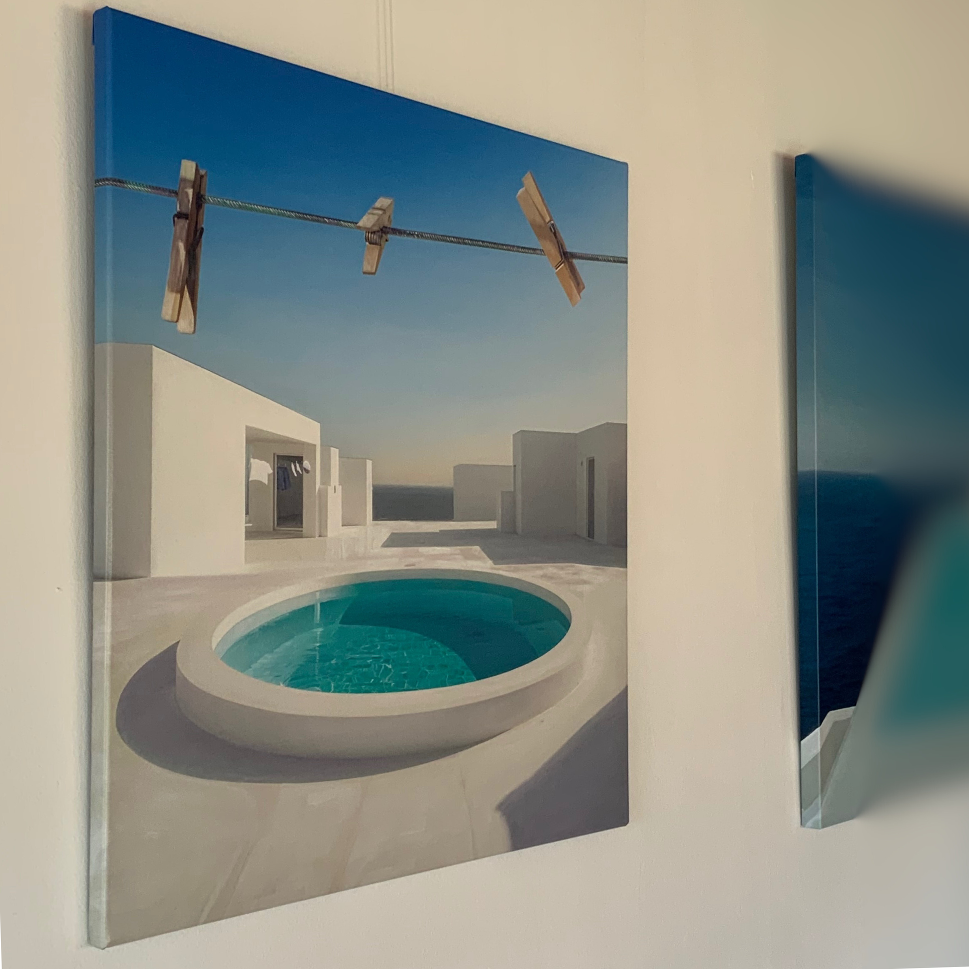 ESSENTIA XIX forma parte del proyecto ESSENTIA, una investigación pictórica sobre los espacios que el ser humano construye para su bienestar y que continúan existiendo cuando dejamos de ser su centro.
