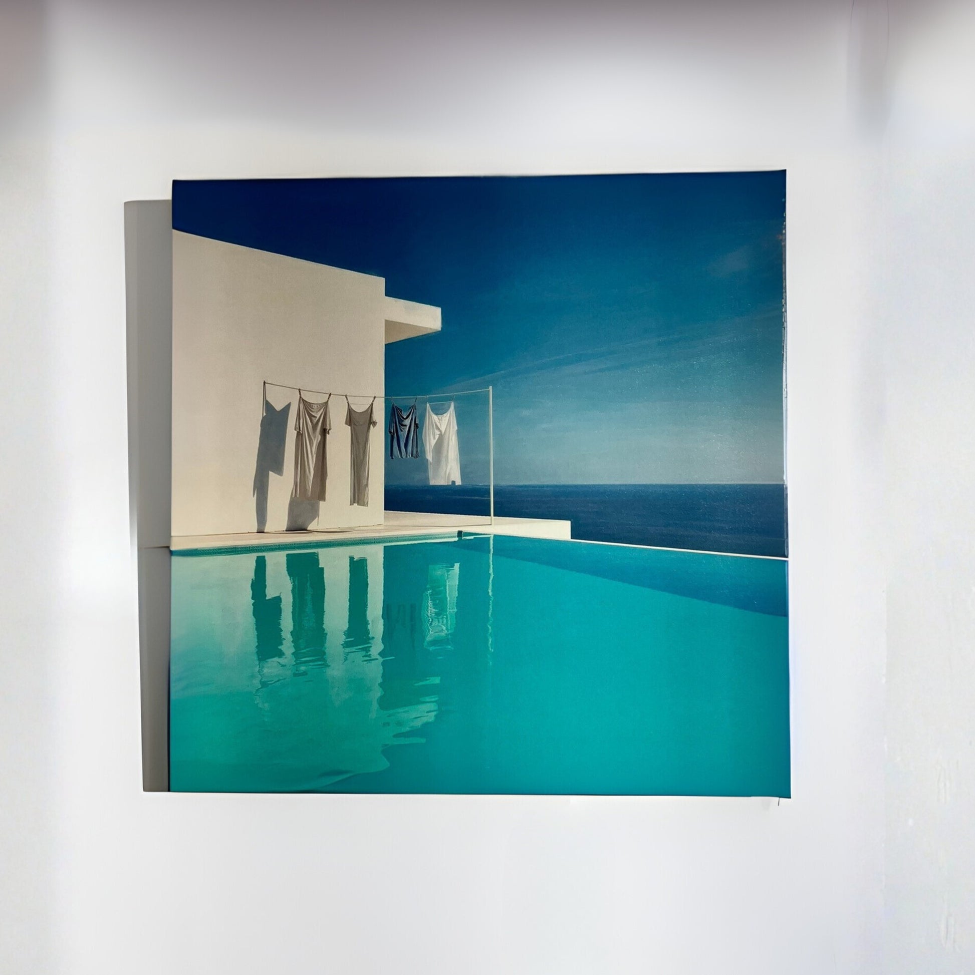 El agua refleja un mundo duplicado, estableciendo un diálogo entre lo real y lo posible; entre lo que vemos y lo que intuimos. En esta frontera luminosa, la naturaleza y la geometría coexisten sin jerarquías, en sintonía con la mirada posthumanista que guía la serie: el ser humano deja de ser el centro y se funde con su entorno, con la luz, el viento y la arquitectura esencial.